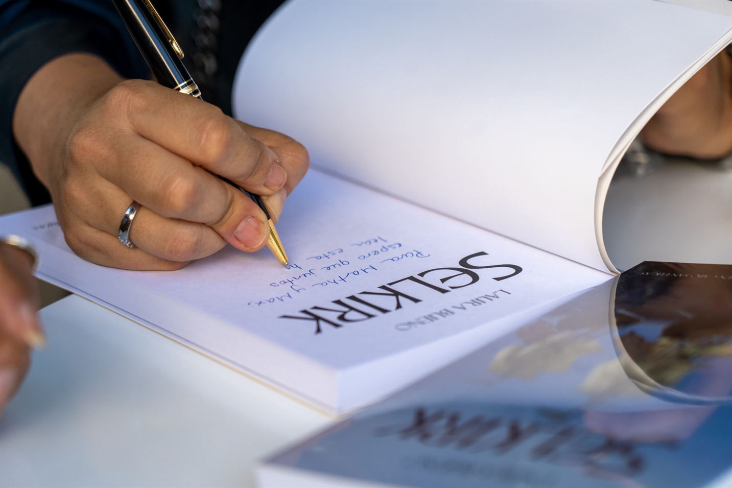“Les invito a transportarnos al año de 1709 y a navegar, como parte de mi tripulación, a través de las emociones que, impulsadas por las olas del mar y el viento, forjaron las letras de esta, Selkirk. El corazón y la pluma guiaron mágicamente mi mano para dar vida, en aquellas páginas en blanco, a sensaciones humanas que van desde la ira, la traición, la soberbia, la pereza, la avaricia, hasta el amor y el miedo”, comentó Laura Bueno.