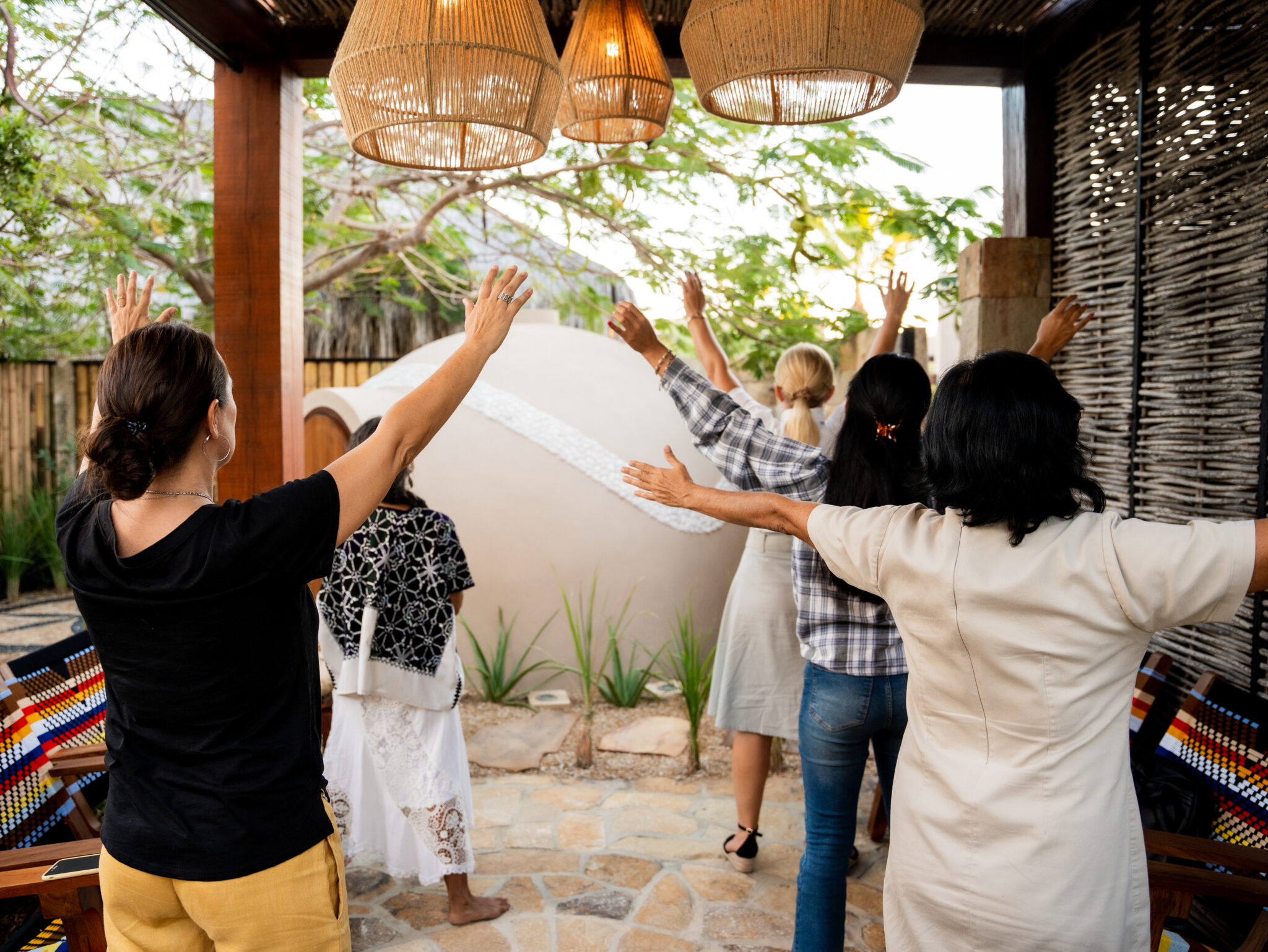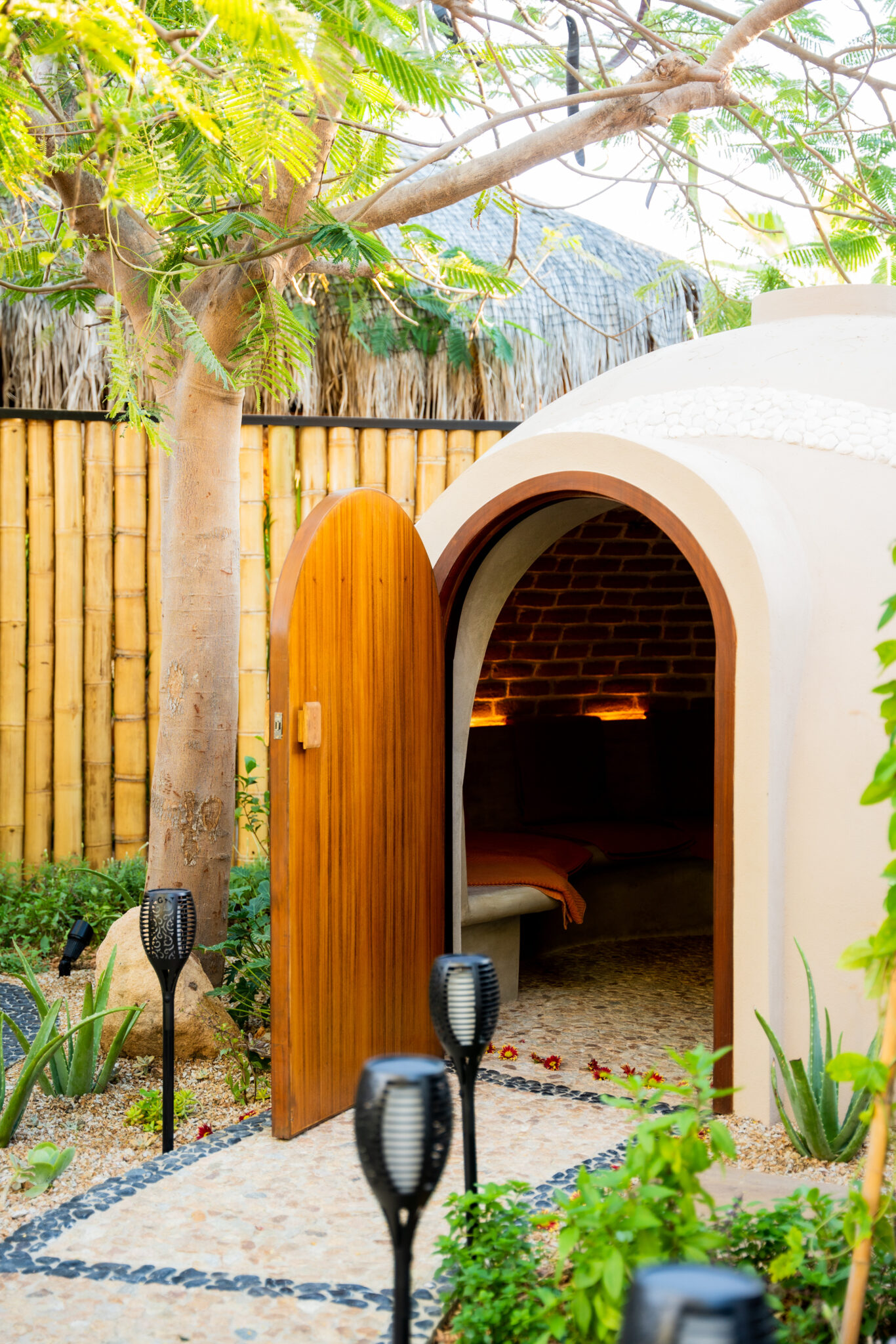 El temazcal, visto como un útero materno, conjuga el bienestar a través del calor, ya que cada poro tiene una sensación, una vibra única. Probarás las cuatro puertas, al abrir y cerrar del temazcal, para que todo el vapor generado salga y entre el nuevo fervor perenne.