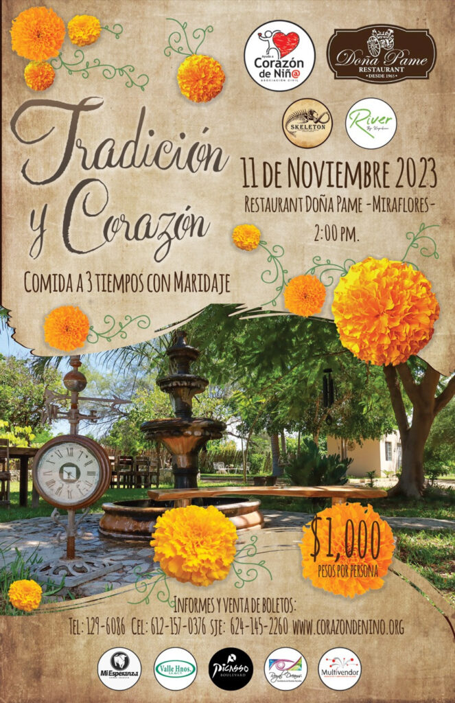 Incorporando la temática de Día de Muertos, este evento—a realizarse el próximo 11 de noviembre, a las 2:00 pm, en el restaurante Doña Pame— será una comida de tres tiempos con maridaje, en beneficio de la fundación Corazón de Niño A.C.
