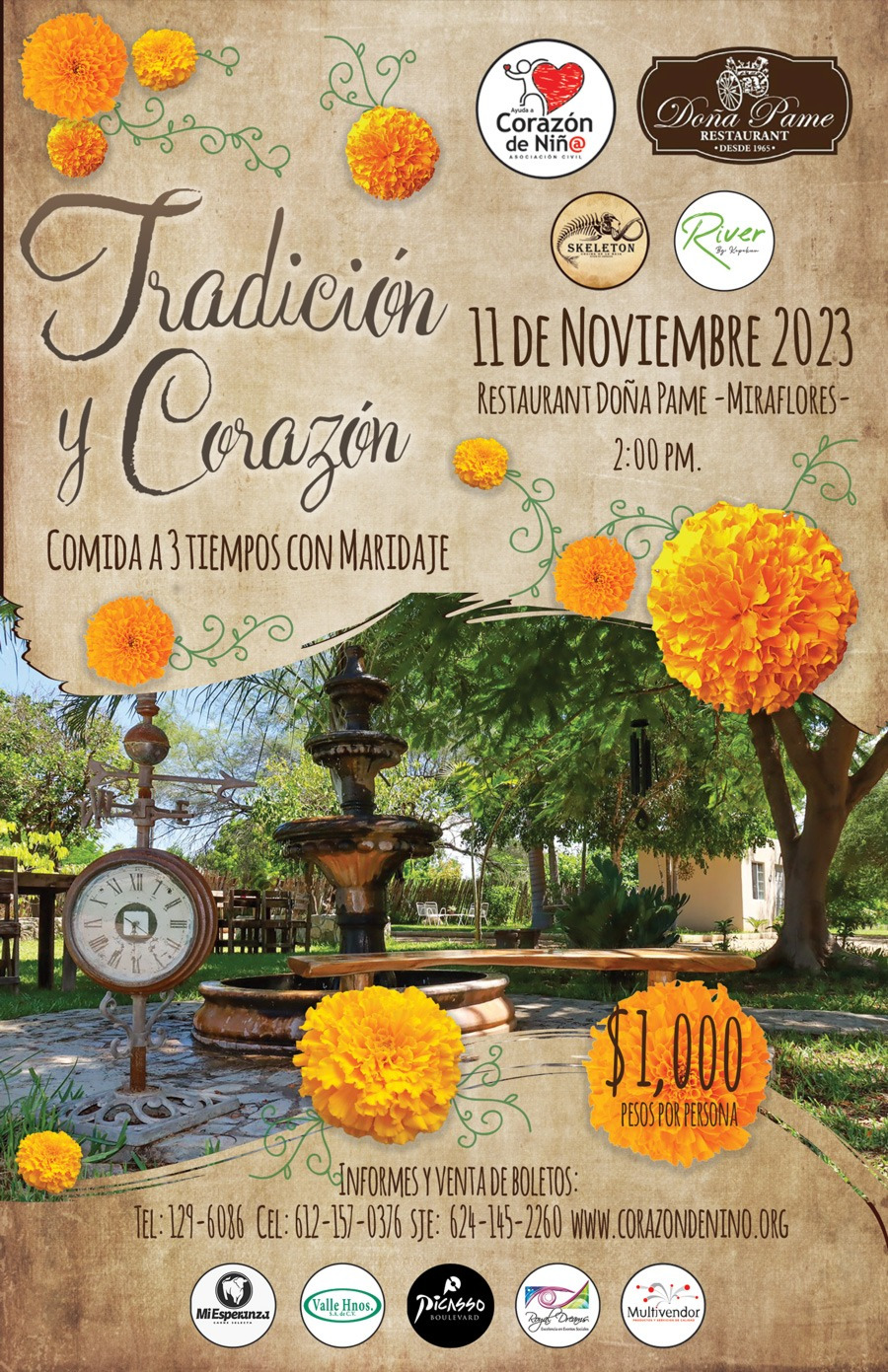 Los boletos —de venta en Restaurant Doña Pame, Skeleton e Instalaciones de Corazón de Niño A.C.– tienen un costo de $1000 MXN y el 100% de lo recaudado más lo invertido en la comida y maridaje será donado a la fundación que, este noviembre, realizará la 11 ª Jornada Unidos de Corazón.