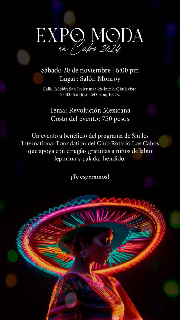 “Expo Moda siempre va de la mano con una labor y una causa social verdadera. En esta ocasión estamos trabajando con el Club Rotario Los Cabos, con Smile International; fundación que se enfoca en la ayuda de niños. Este evento se centra en la temática revolucionaria”, anticipó Rafael García.