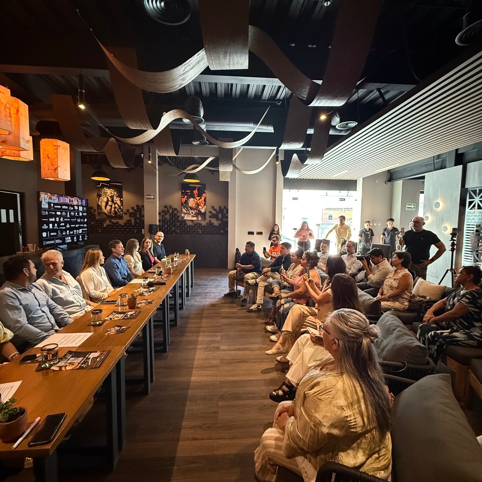 El presidium del evento fue integrado por Raquel Rocha, directora general del festival; Mario Gadsden, fundador del festival; Edwina Cortés Guitron, Coordinadora de Promoción Económica e Inversión; Rodrigo Esponda, director general de FITURCA; Lilzi Orcí, presidente ejecutiva de la Asociación de Hoteles de Los Cabos; Hernán Hecht, director artístico del festival; Paulina Villafaña, Dirección Municipal de Turismo de Los Cabos; Hanna Sachse, representante del restaurante anfitrión, Penca.