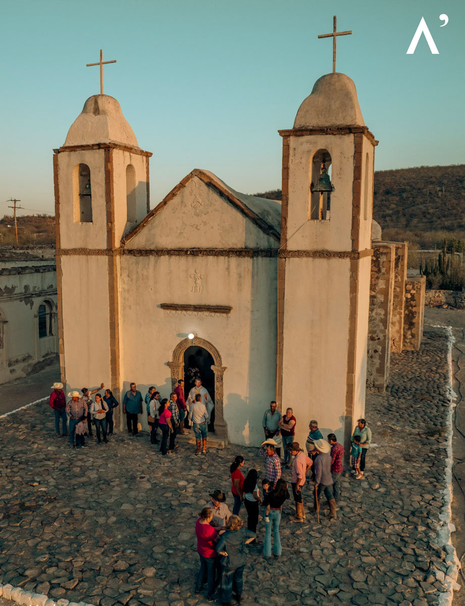 Pero si el mar enseña movimiento, San Luis Gonzaga enseña quietud. A más de una hora del Valle de Santo Domingo, entre el oasis, los palmares y las huertas, se encuentra esta comunidad donde el tiempo aún obedece al sol y a la campana de la iglesia. Fundada como misión jesuita en el siglo XVIII, San Luis Gonzaga no ha perdido su alma. Aún huele a pan recién horneado y a cítricos maduros. Aún se reza y se canta.