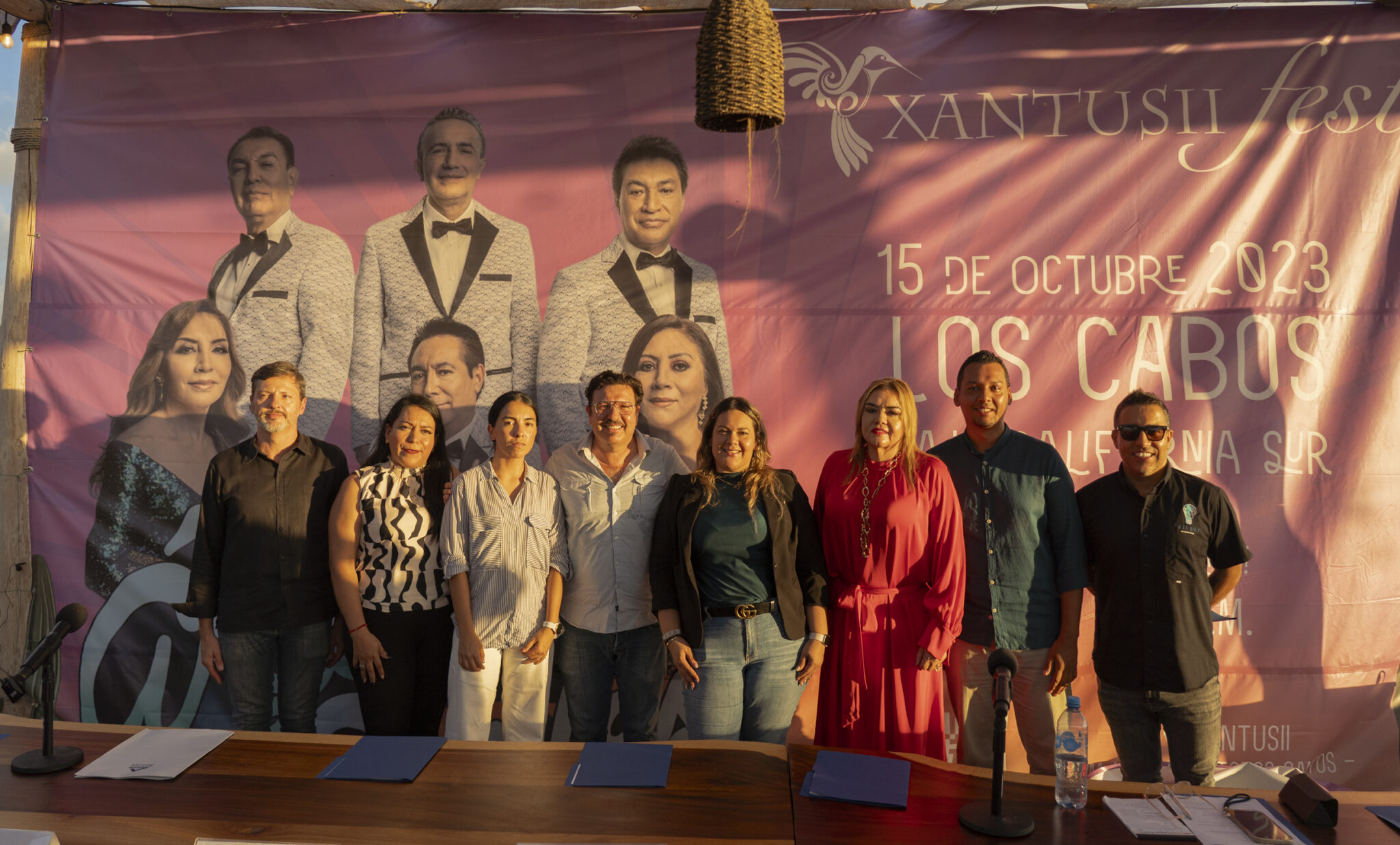 The press conference about the concert was held at the open-air bar of Cielindo Sunset Cantina in Migriño. It was attended by Anabel Félix Báez, Coordinator of economic promotion of the XIV City Hall of Los Cabos, and Jorge Aníbal Amador, coordinator of Tourism Promotion, Tourism Directorate of Los Cabos. Together, they are working towards boosting tourism in the area. Rodrigo Esponda, Director General of the Los Cabos Tourism Trust; Katty Ortiz, Director of the National Chamber of Commerce, Services and Tourism of Los Cabos; Rodrigo Cabeza de Vaca, Producer of Xantusii Fest; Alexandra Orozco, Director of Marketing and Sales of Xantusii Fest. Tendencia; Elva Castillo, General Director of Mundo Ejecutivo (Executive World) Baja California Sur and Full Pass; and Farid Becerra, Director of Trilogy.