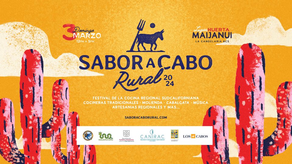 The regional gastronomic festival, Sabor a Cabo Rural, is returning on March 3rd, 2024, from 12:00 pm to 5:00 pm. The festival aims to promote and preserve the traditional flavours of Baja California Sur. It will take place at the Maijanui Orchard in La Candelaria. In this legendary location, people from all over the Republic visited the witch doctor’s house to cure rabies. Local cooks will share regional dishes, including machaca, beef head tatemado, clams tatemadas, fish meatballs, fish taquitos, and tamales.