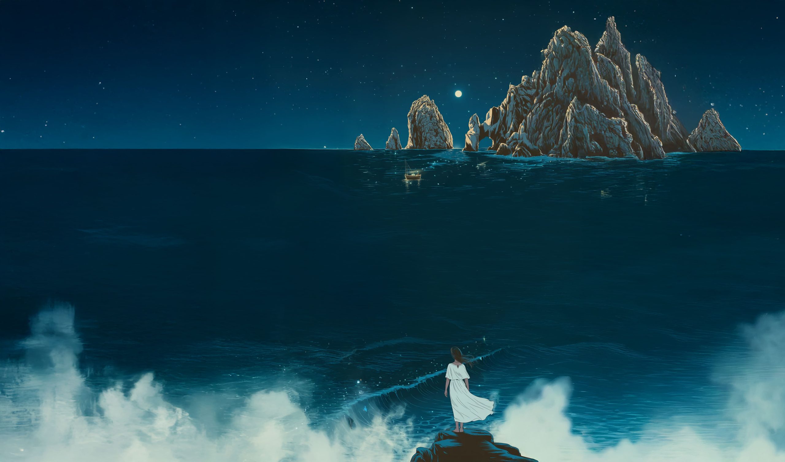At dawn, the woman disappears. Only the sound of the water remains, softer now, as if someone had managed, for a few hours, to persuade the sea to remember.